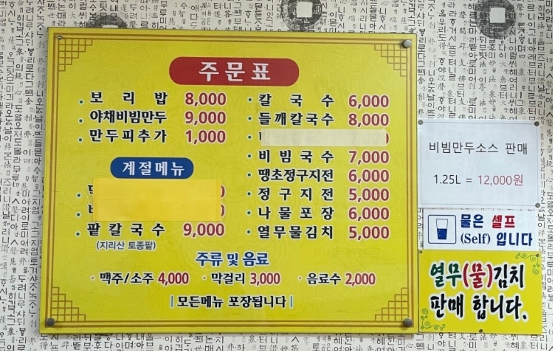 괜히 메뉴판에 나물하고 열무를 별도 판매하는 이유가 있음.